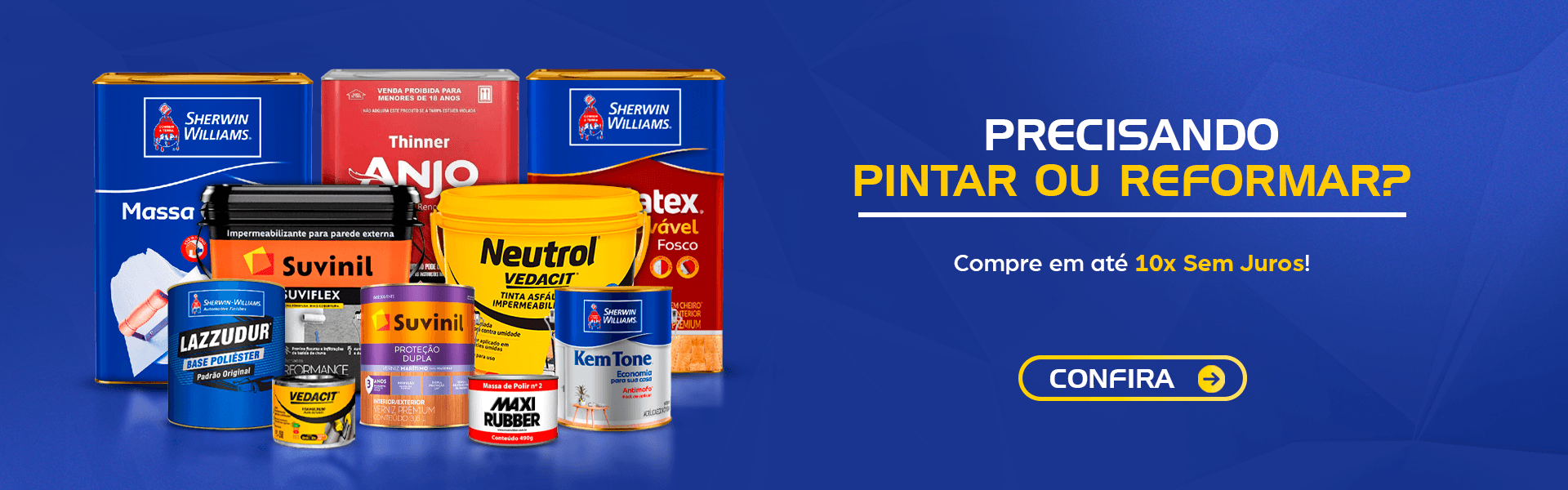 Complemente seu trabalho com nossos acessórios para pintura. Temos rolos, pincéis, bandejas e fitas adesivas de alta qualidade, que facilitam e aprimoram o processo de pintura. Nossos acessórios são escolhidos para proporcionar praticidade e resultados profissionais.